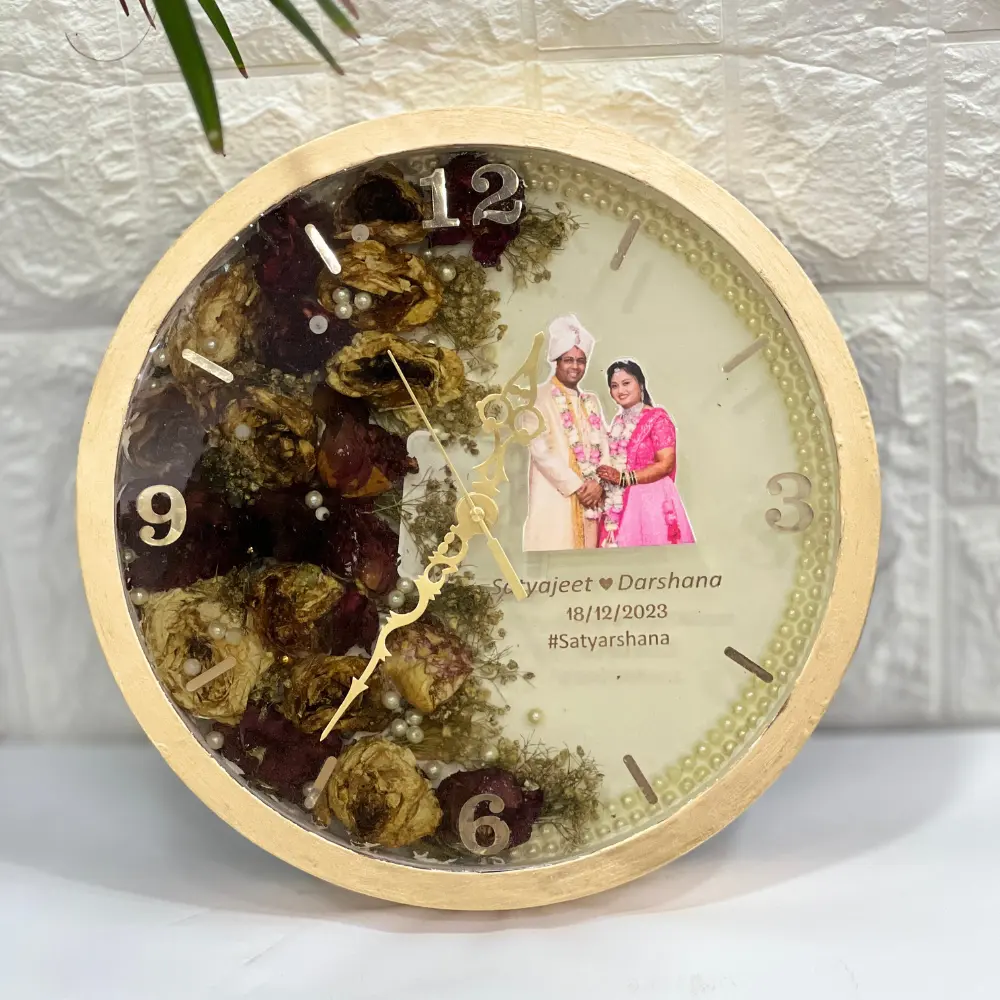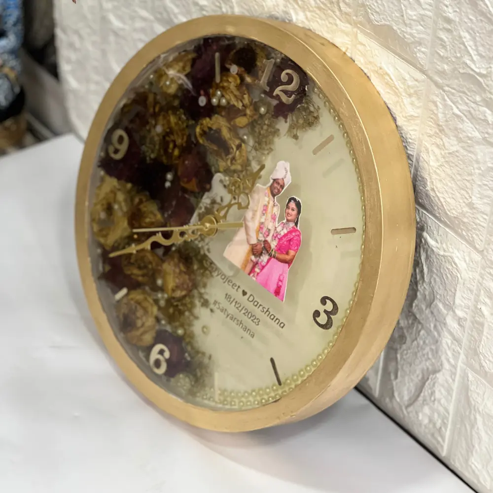 Couple Photo With Garland Flower in Epoxy Wall Clock (12 Inch)