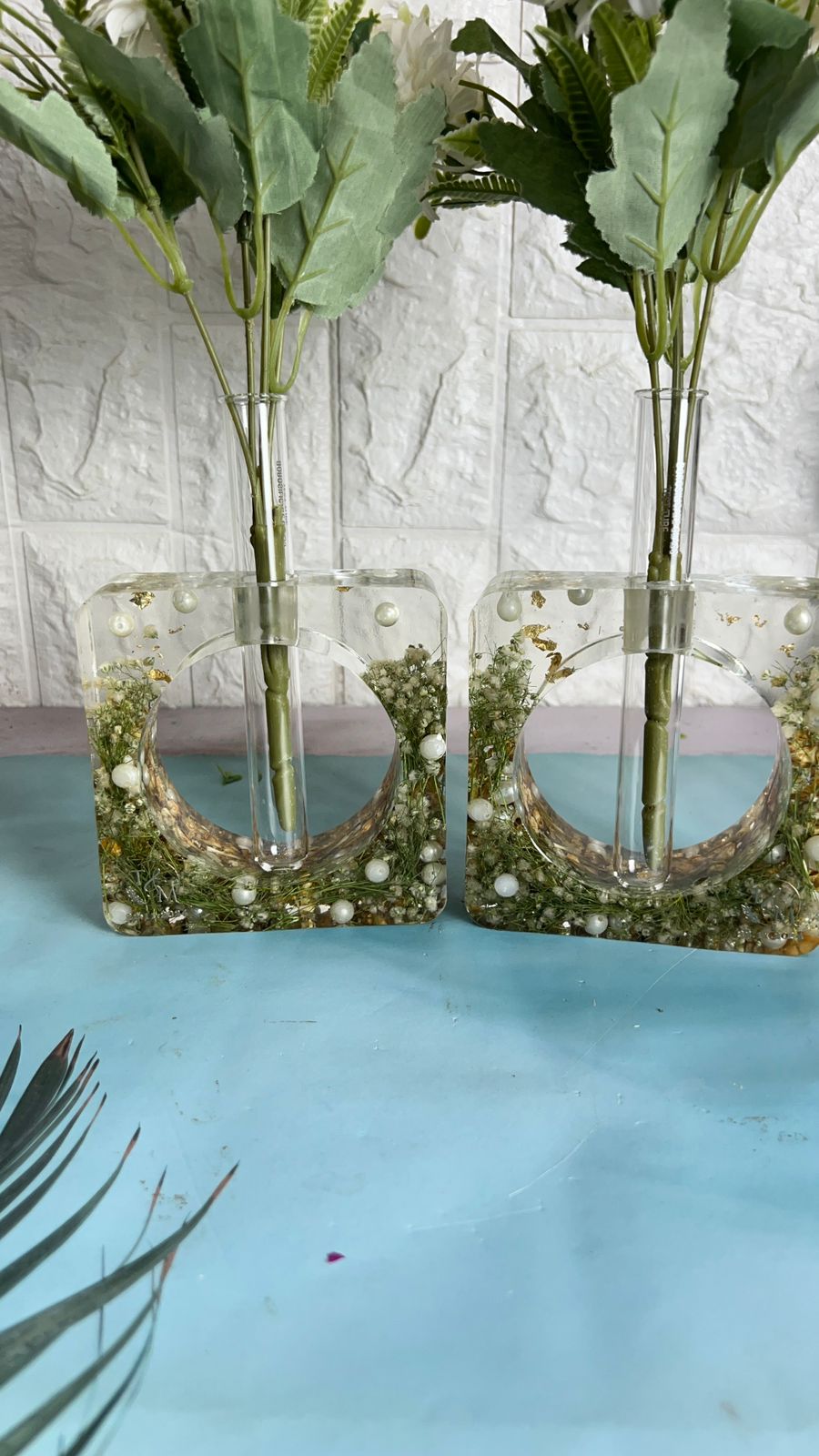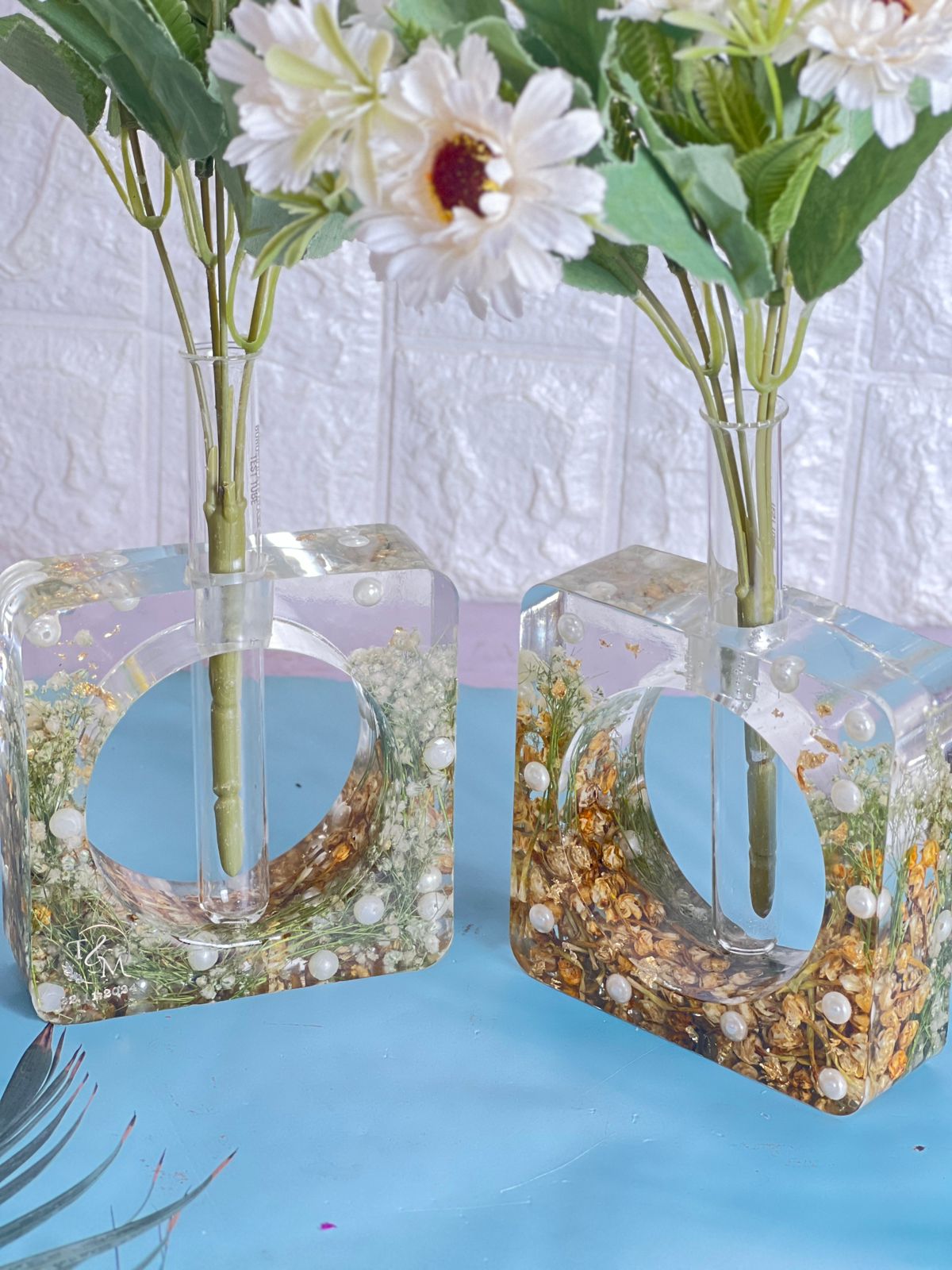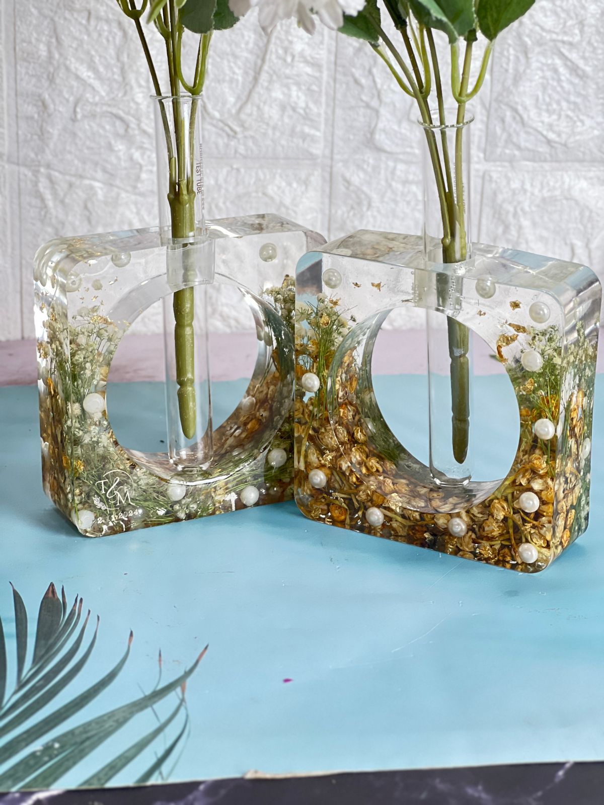 "Bring a touch of elegance to your home with the Crystal-Clear Varmala Preservation Planter. This set of 2 Rectangular Deep Casting Planters beautifully preserves your wedding flowers and white pearls in high-quality epoxy resin. The transparent design of the planters lets you admire the preserved blooms and pearls from every angle, making it a stunning addition to any space. This unique piece also serves as a beautiful reminder of your special day, bringing both charm and lasting beauty into your home. You can also preserve your wedding flowers or any special occasion flowers in resin for an everlasting keepsake. With our easy pickup and drop-off service, we ensure safe and convenient handling across India."