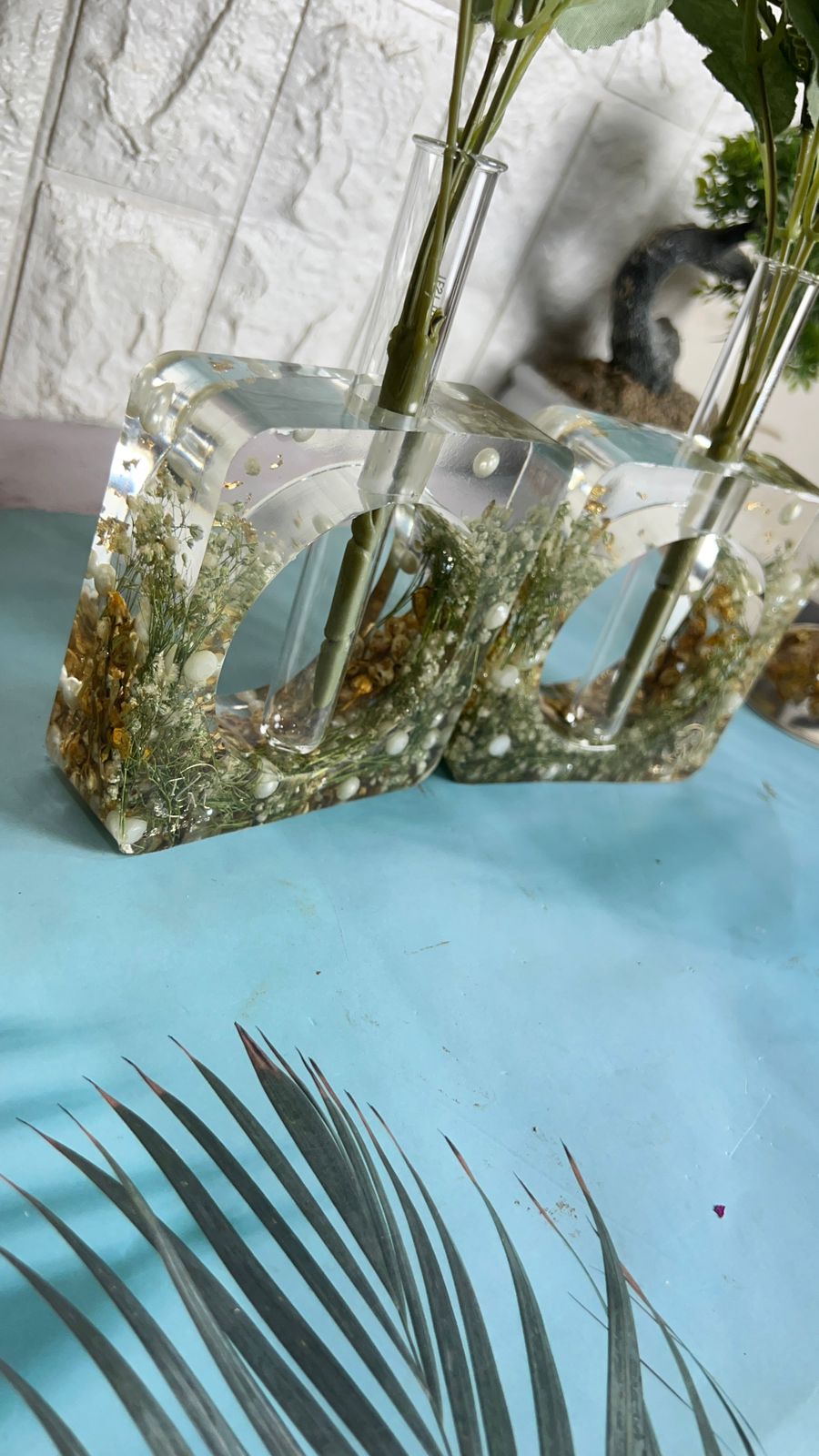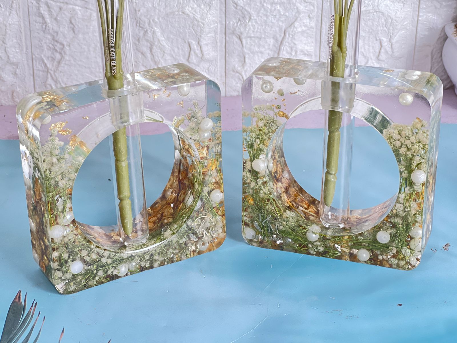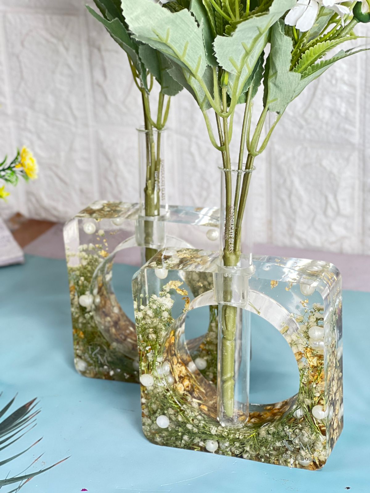 "Bring a touch of elegance to your home with the Crystal-Clear Varmala Preservation Planter. This set of 2 Rectangular Deep Casting Planters beautifully preserves your wedding flowers and white pearls in high-quality epoxy resin. The transparent design of the planters lets you admire the preserved blooms and pearls from every angle, making it a stunning addition to any space. This unique piece also serves as a beautiful reminder of your special day, bringing both charm and lasting beauty into your home. You can also preserve your wedding flowers or any special occasion flowers in resin for an everlasting keepsake. With our easy pickup and drop-off service, we ensure safe and convenient handling across India."