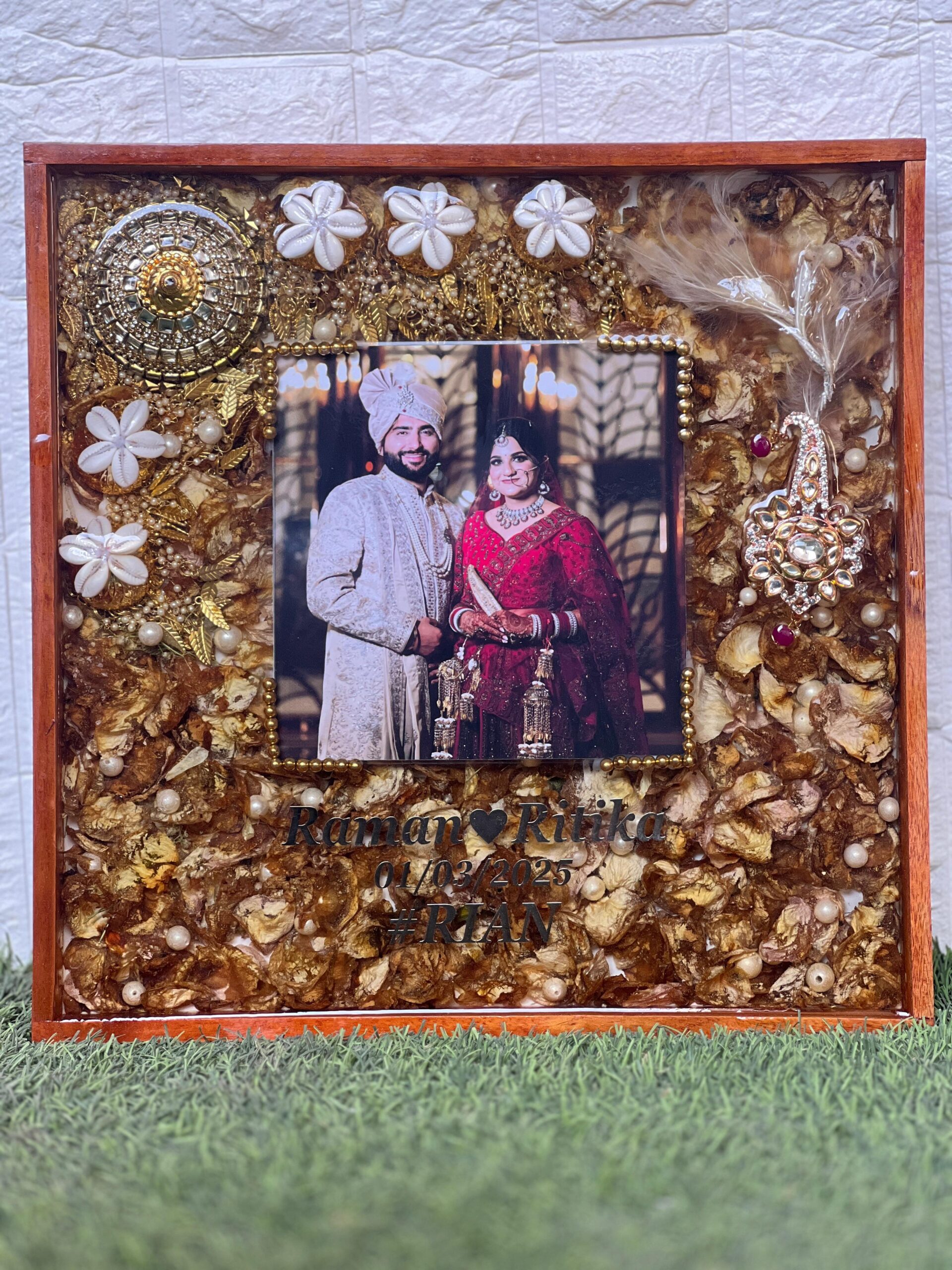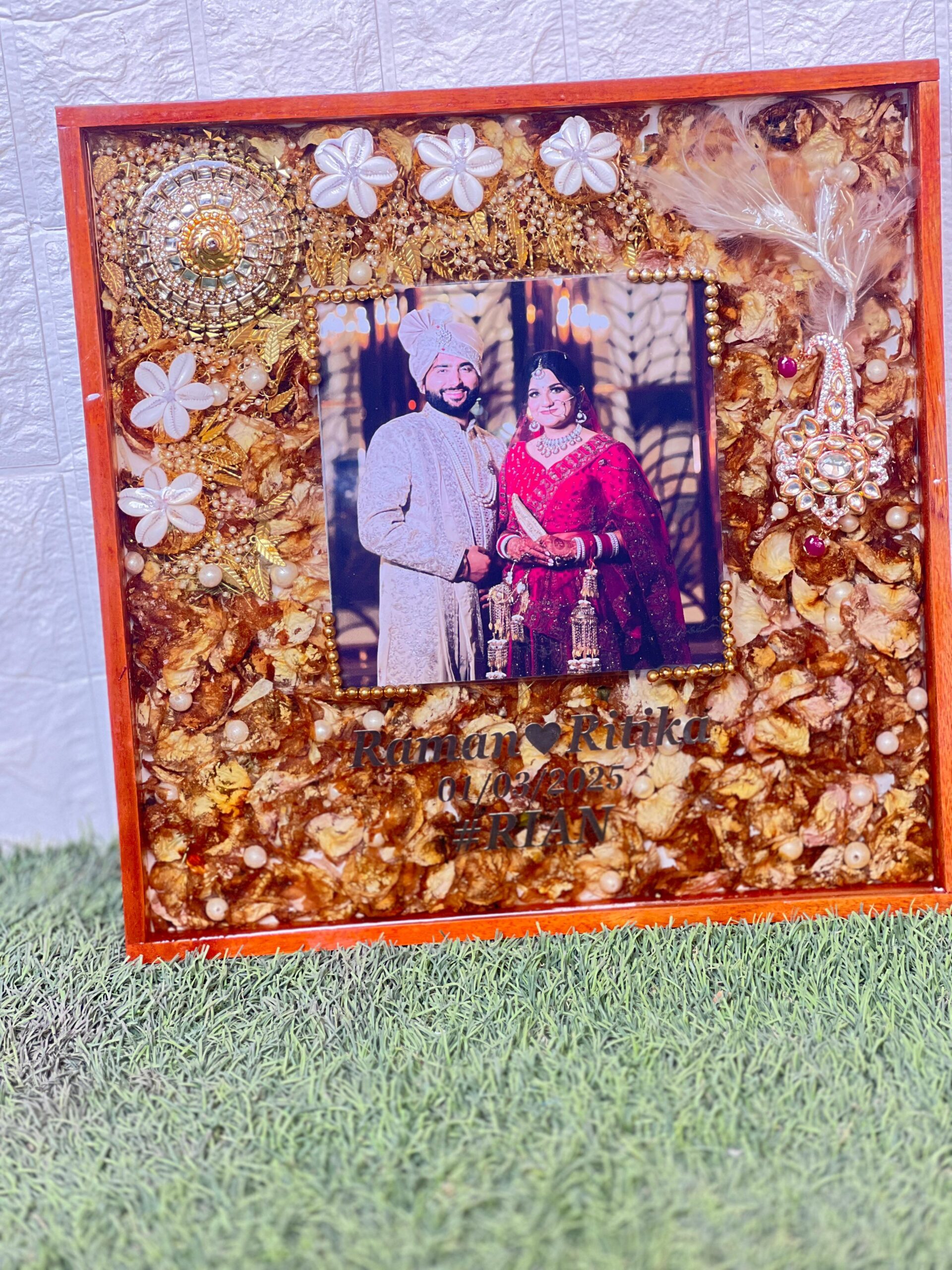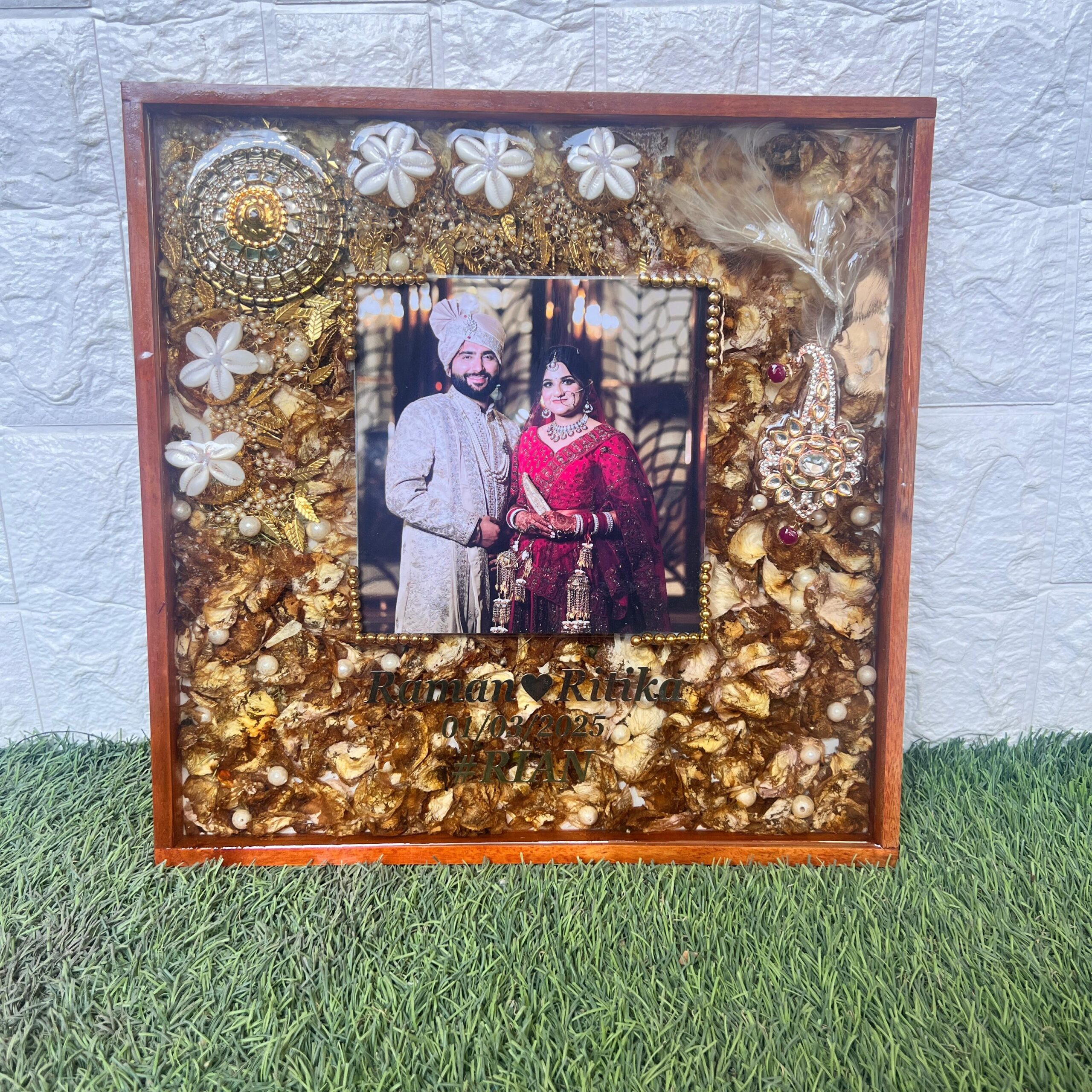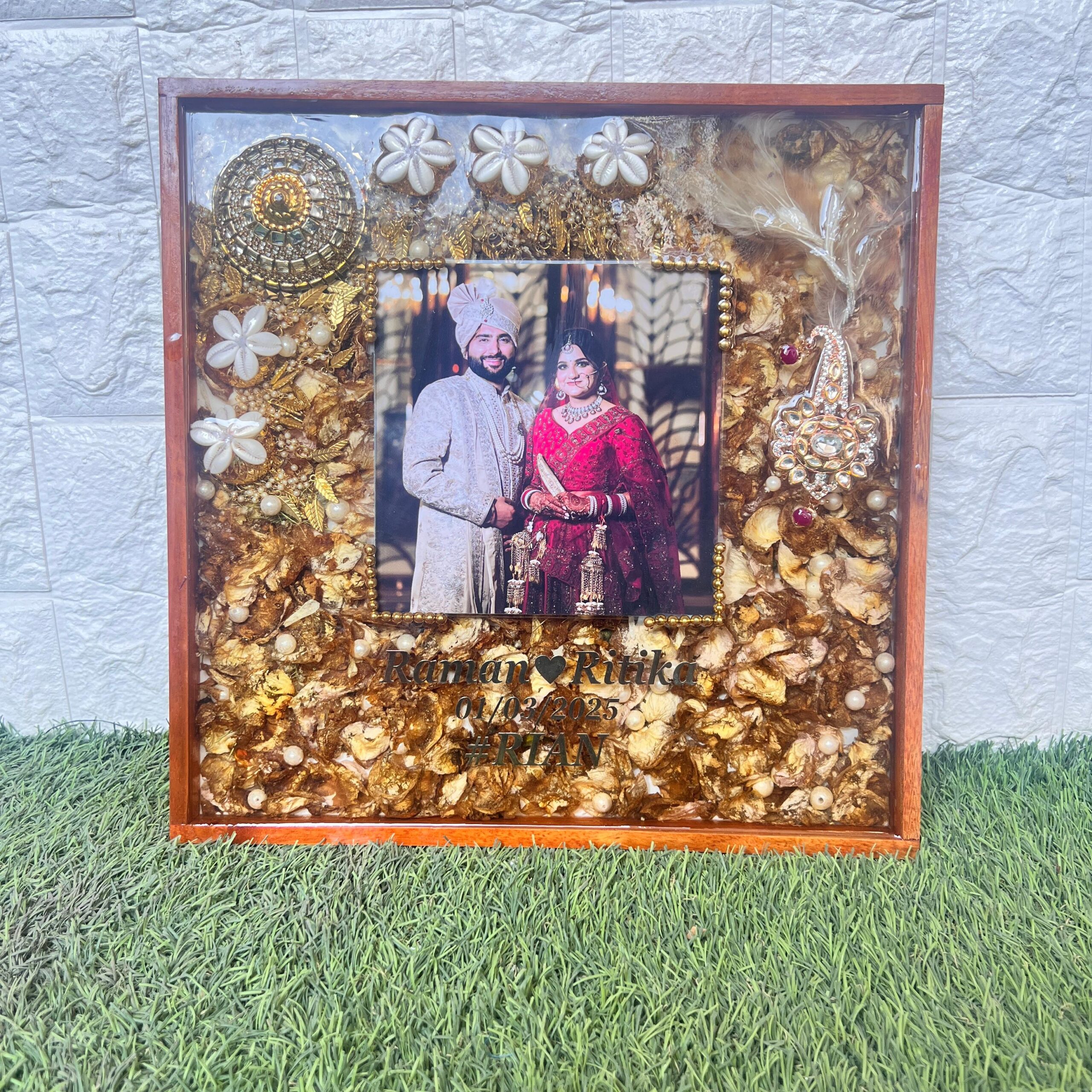 Each frame is handcrafted with love, helping you preserve wedding memories in resin for a lifetime. Add your names, photo, and personal items to make this frame 100% unique to your story. It’s a perfect wedding keepsake gift that shines with tradition and style.