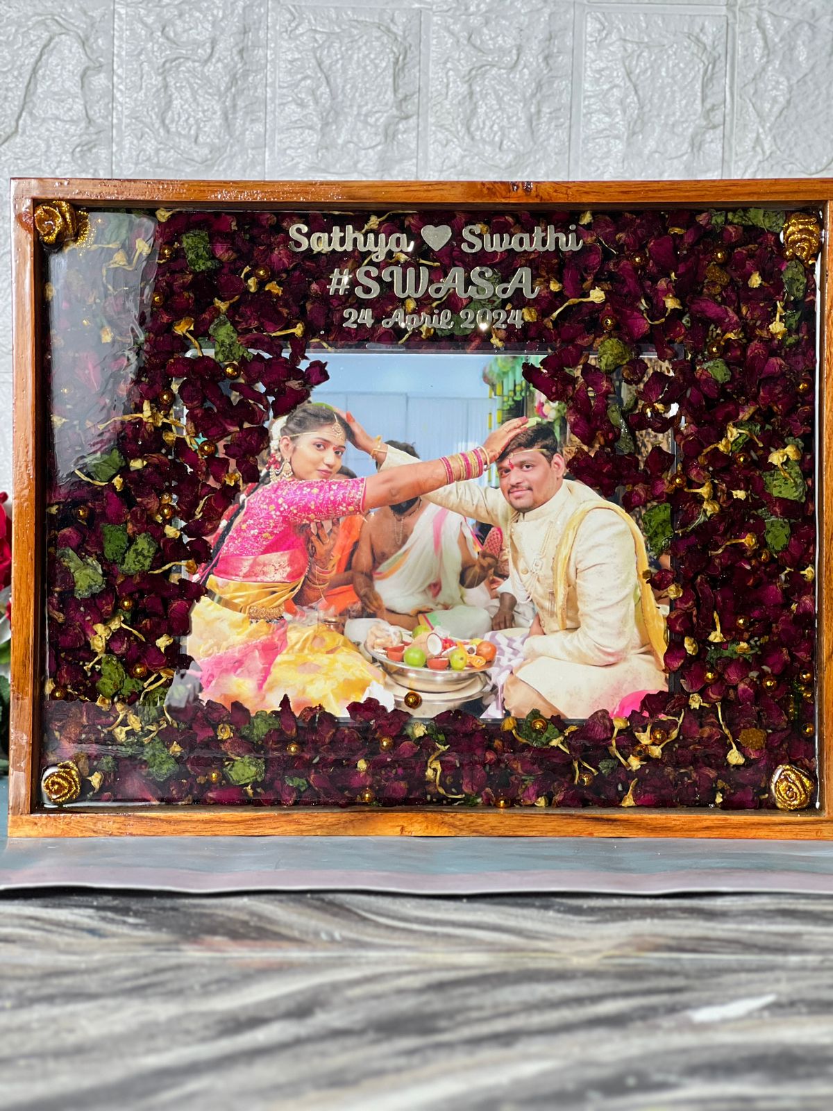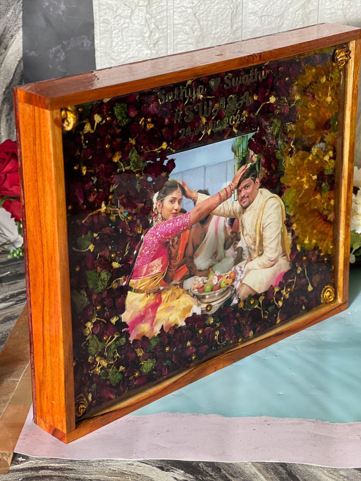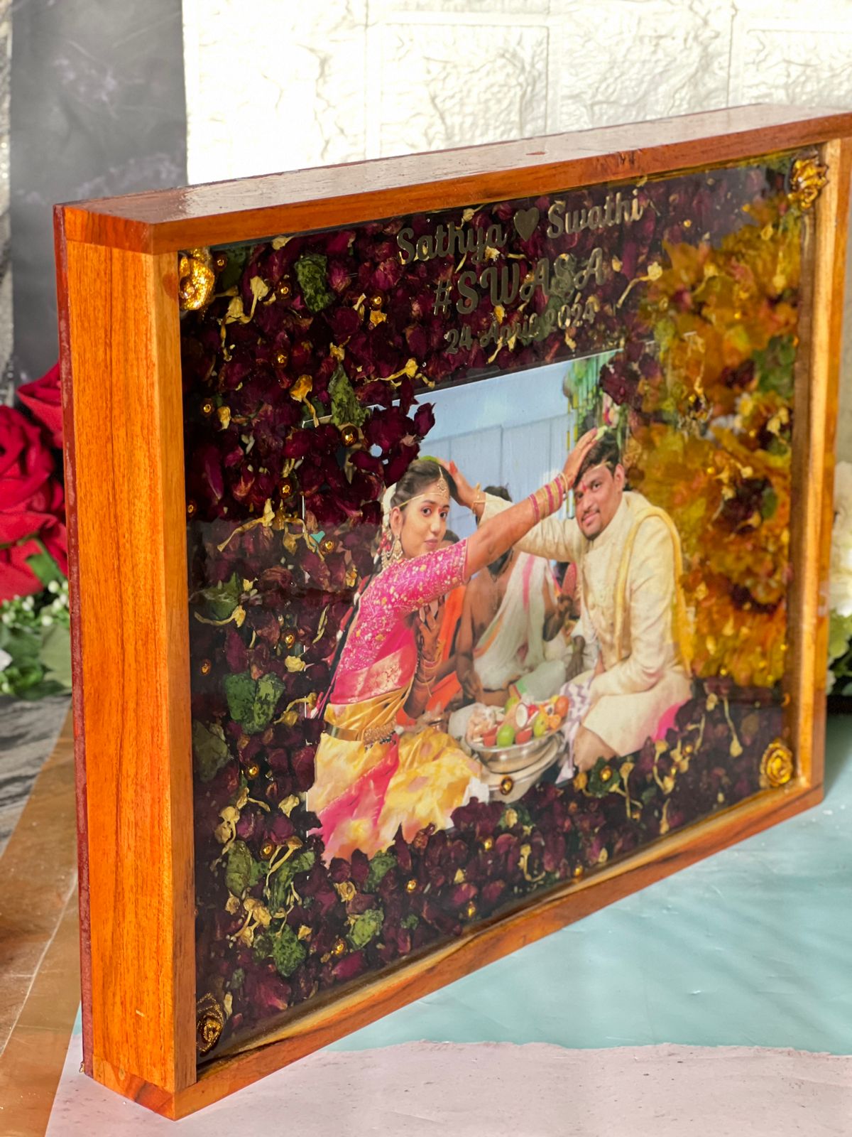 Product Description: Celebrate your wedding memories with the Deluxe Epoxy Wedding Flower Preservation (11 by 14 inch) in a Teakwood Frame. This rectangular keepsake features red pastels and delicate pearls, beautifully arranged around your personalized names and wedding date. Crafted with premium epoxy resin, it preserves your wedding flowers and details in stunning clarity. The 11 x 14 inch size makes it a striking addition to your home décor, capturing the essence of your love story for years to come. Features: