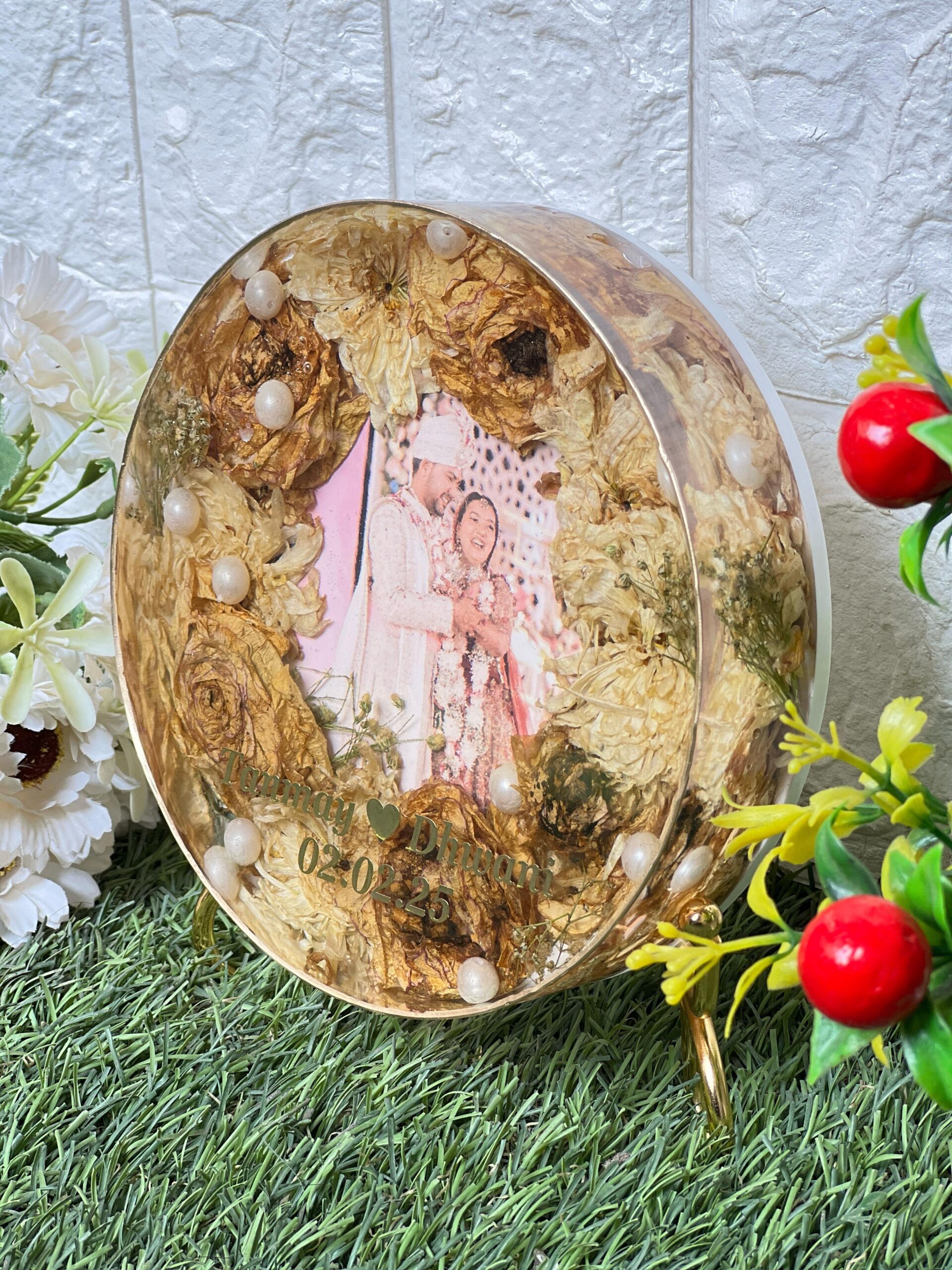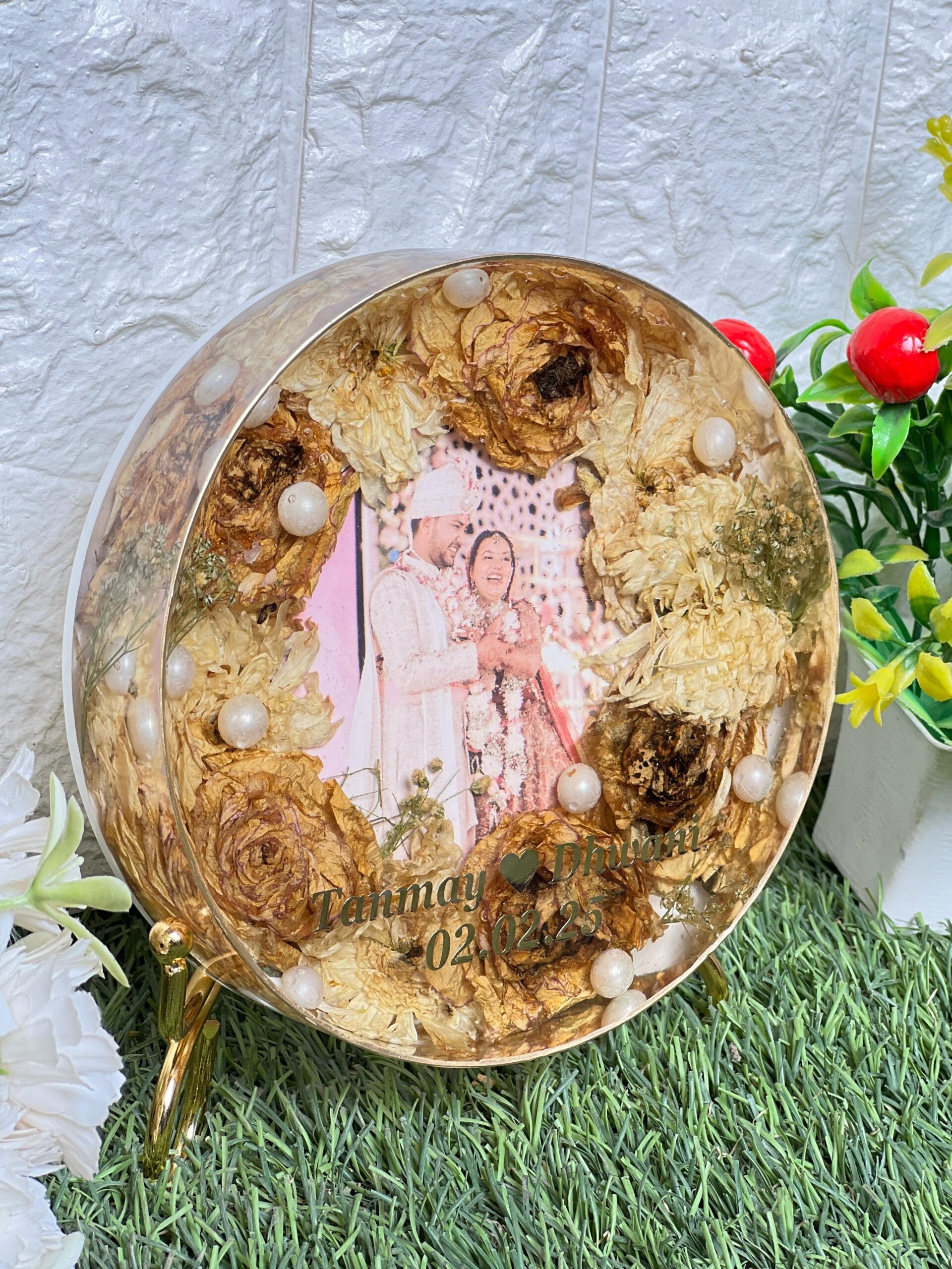 Epoxy Resin Photo Frame with Varmala Flowers (6- Inch)