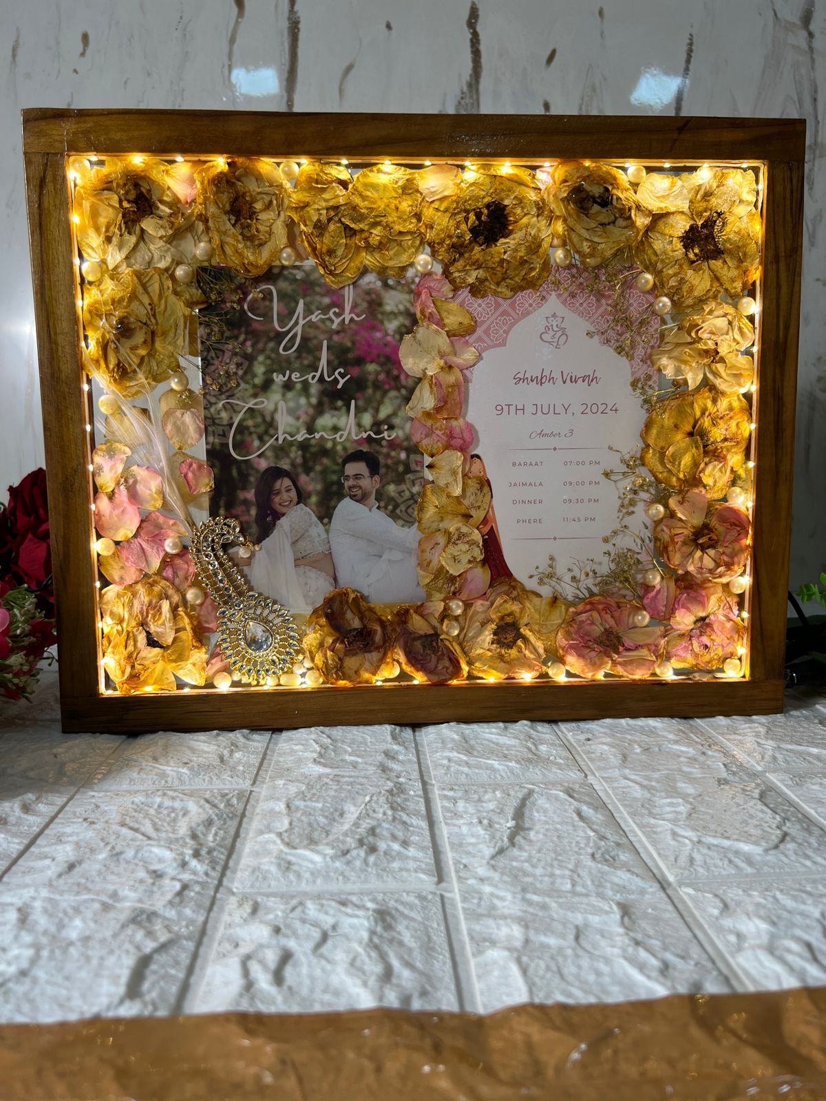 • Product Name: LED Wooden Frame with Wedding Memories Preservation (12×15 Inch)