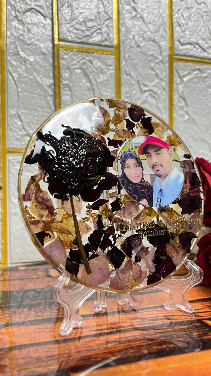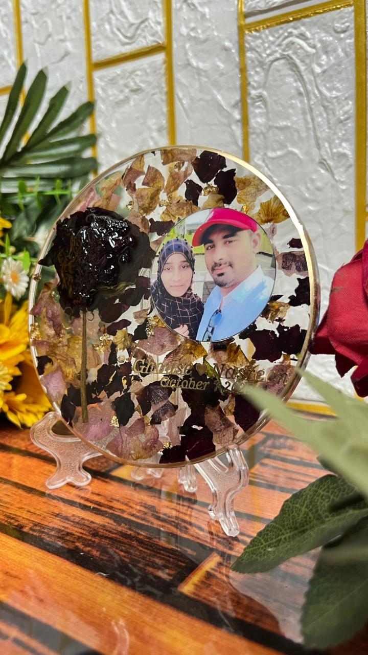 This Personalised Resin Photo Frame is a perfect way to save your wedding varmala and turn it into a lifetime memory. Made with real preserved flowers, your photo, and name beautifully placed inside clear resin, it creates a heart-touching reminder of your special day.