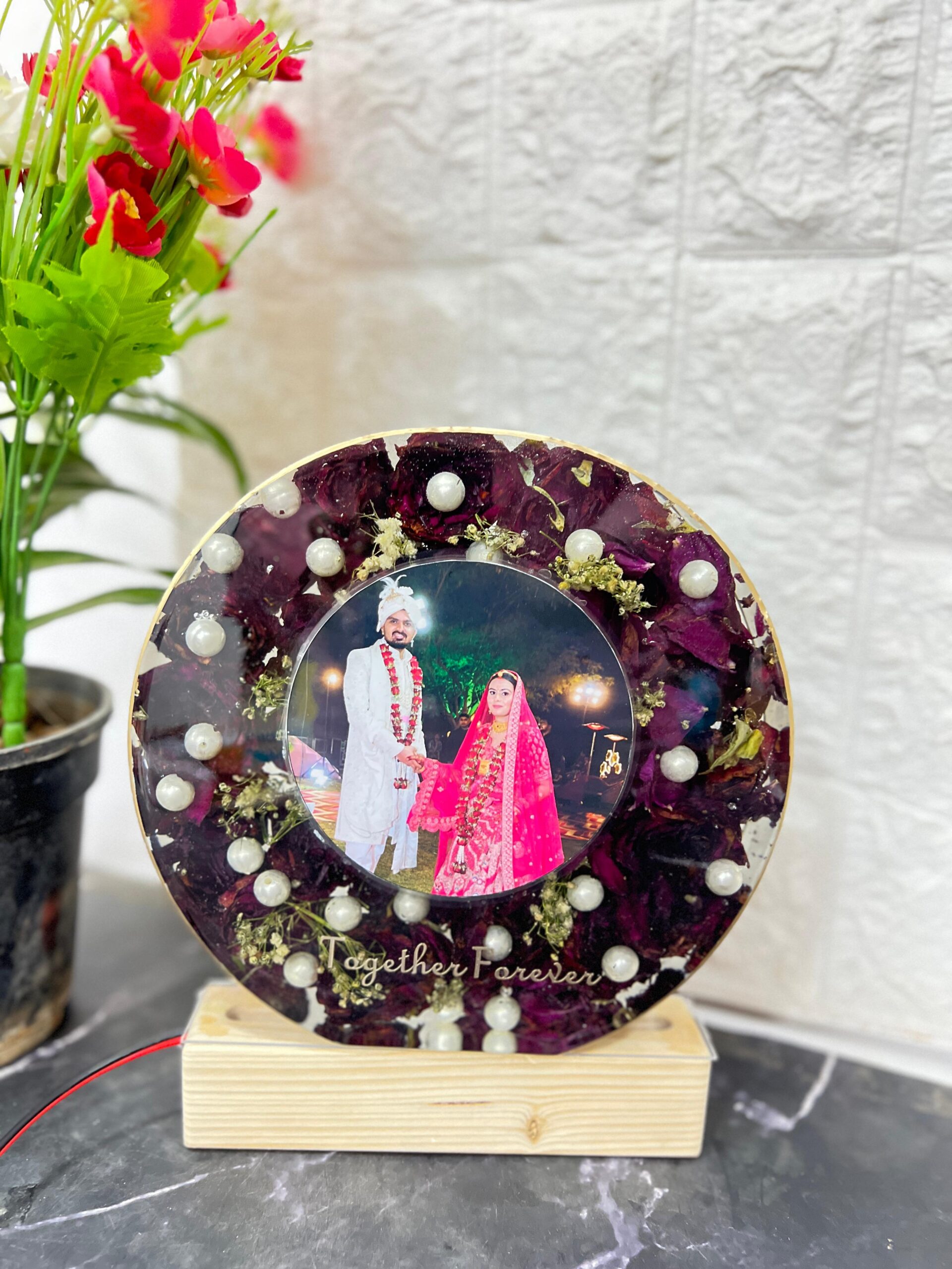 • Stand: Wooden LED Stand with engraved wedding date
