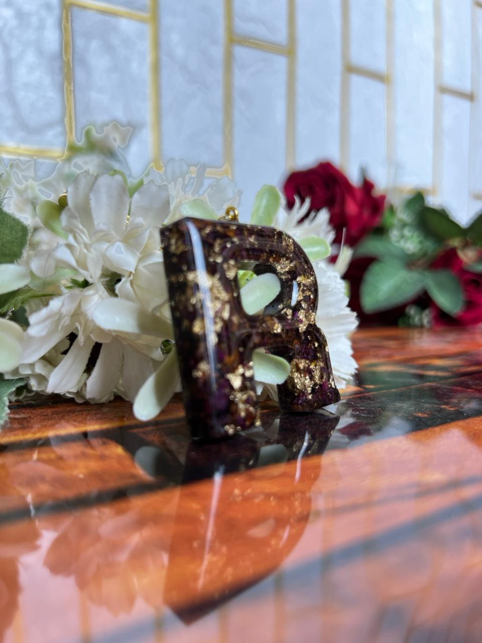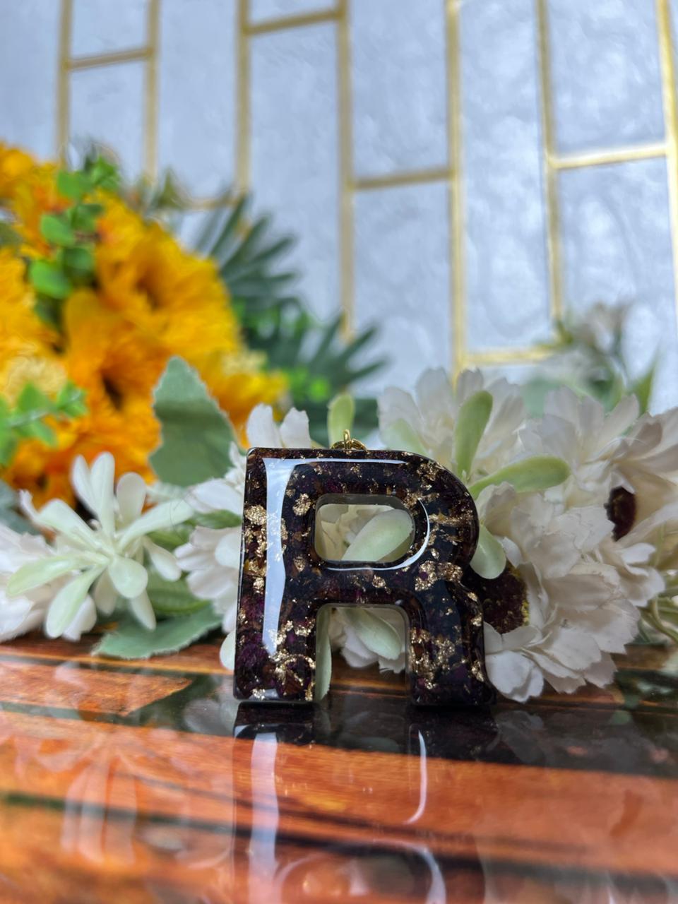This Resin Preserved Letter “R” Keychain is a special handmade piece created with dried flowers and golden flakes. Every keychain is made using clear resin, which gives it a bright and shiny finish.