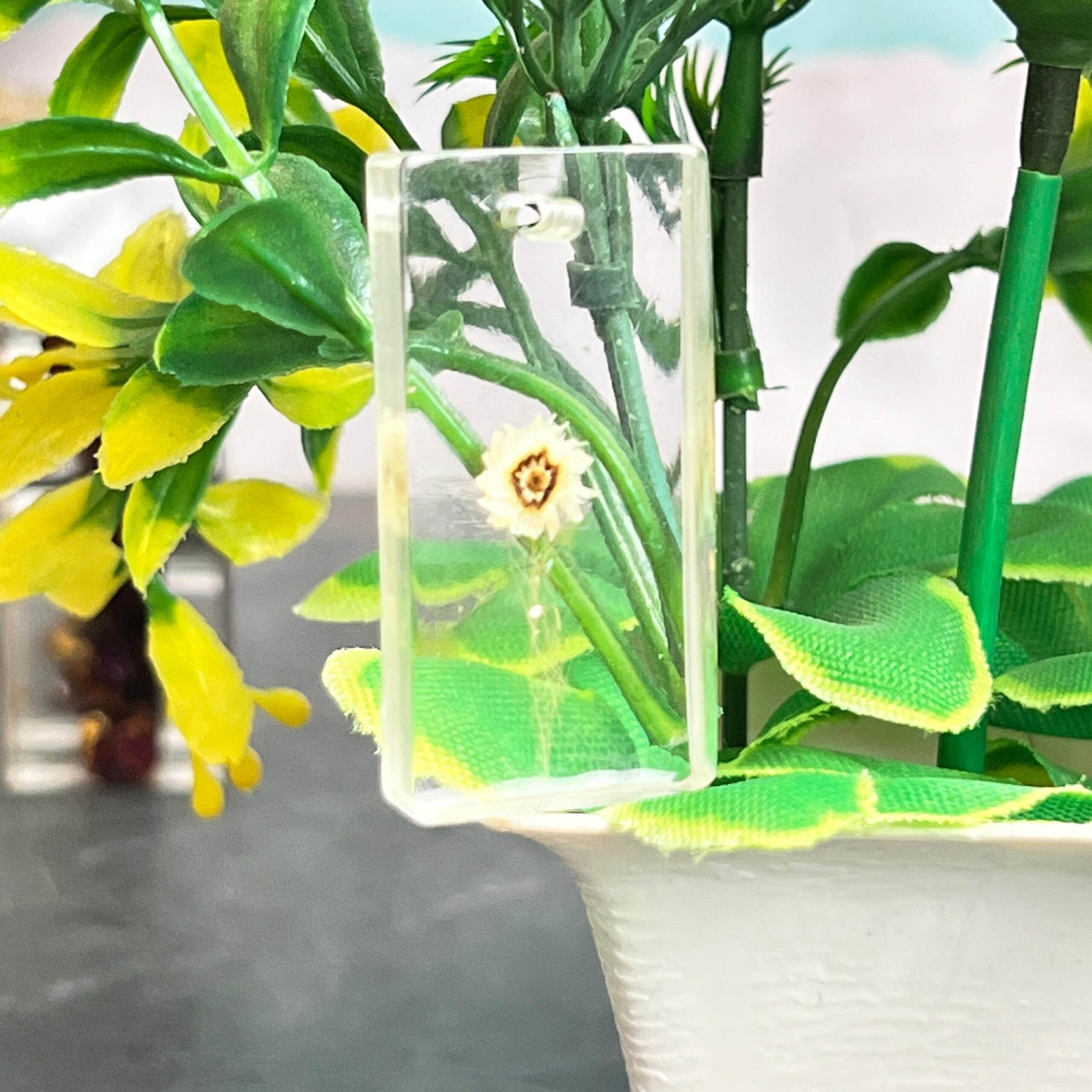 This Resin Pendant with Real Flower and Hair is a special piece of custom jewelry that holds deep meaning. Designed in a clear rectangular shape, this pendant beautifully showcases a real dried flower and a preserved lock of hair inside premium epoxy resin.