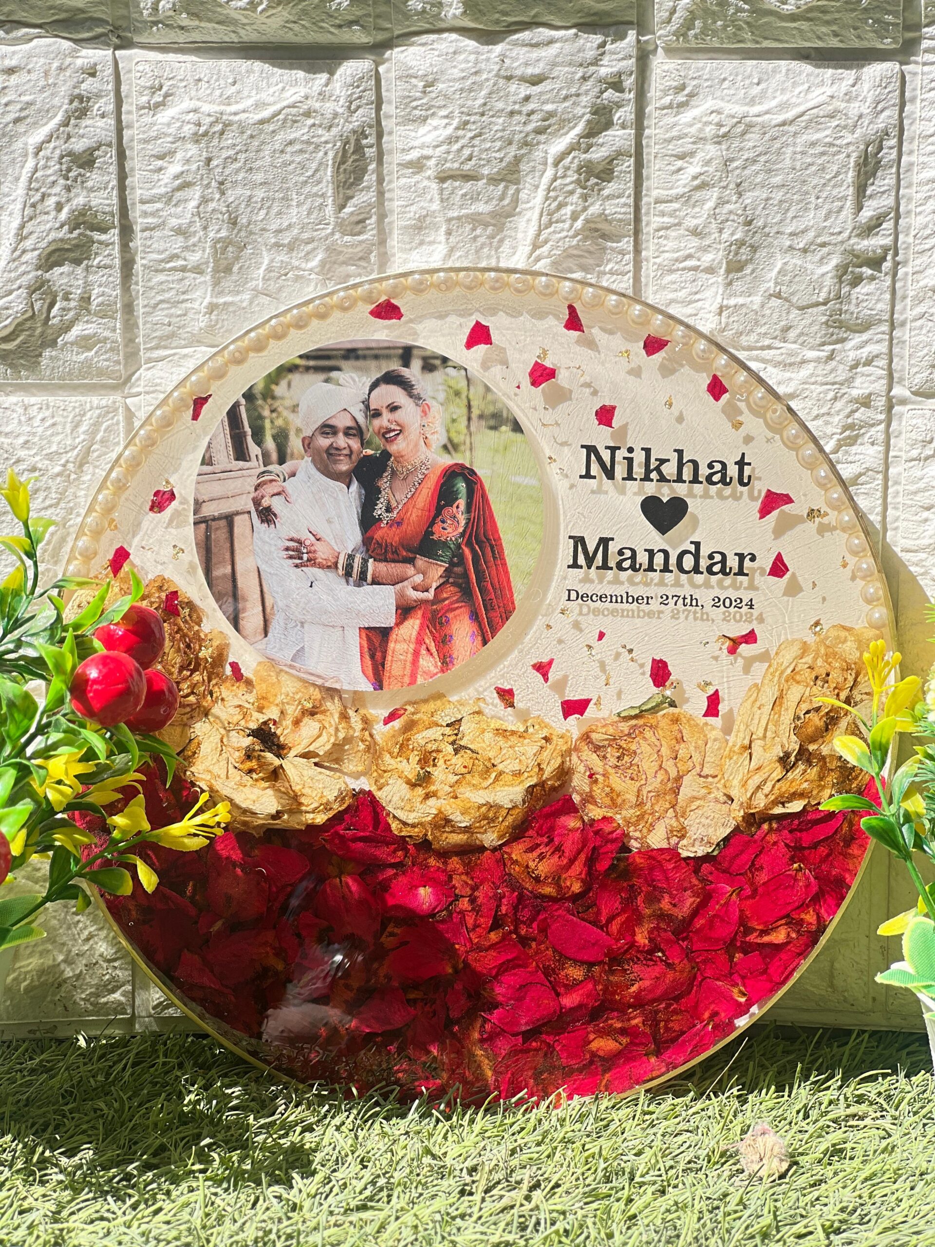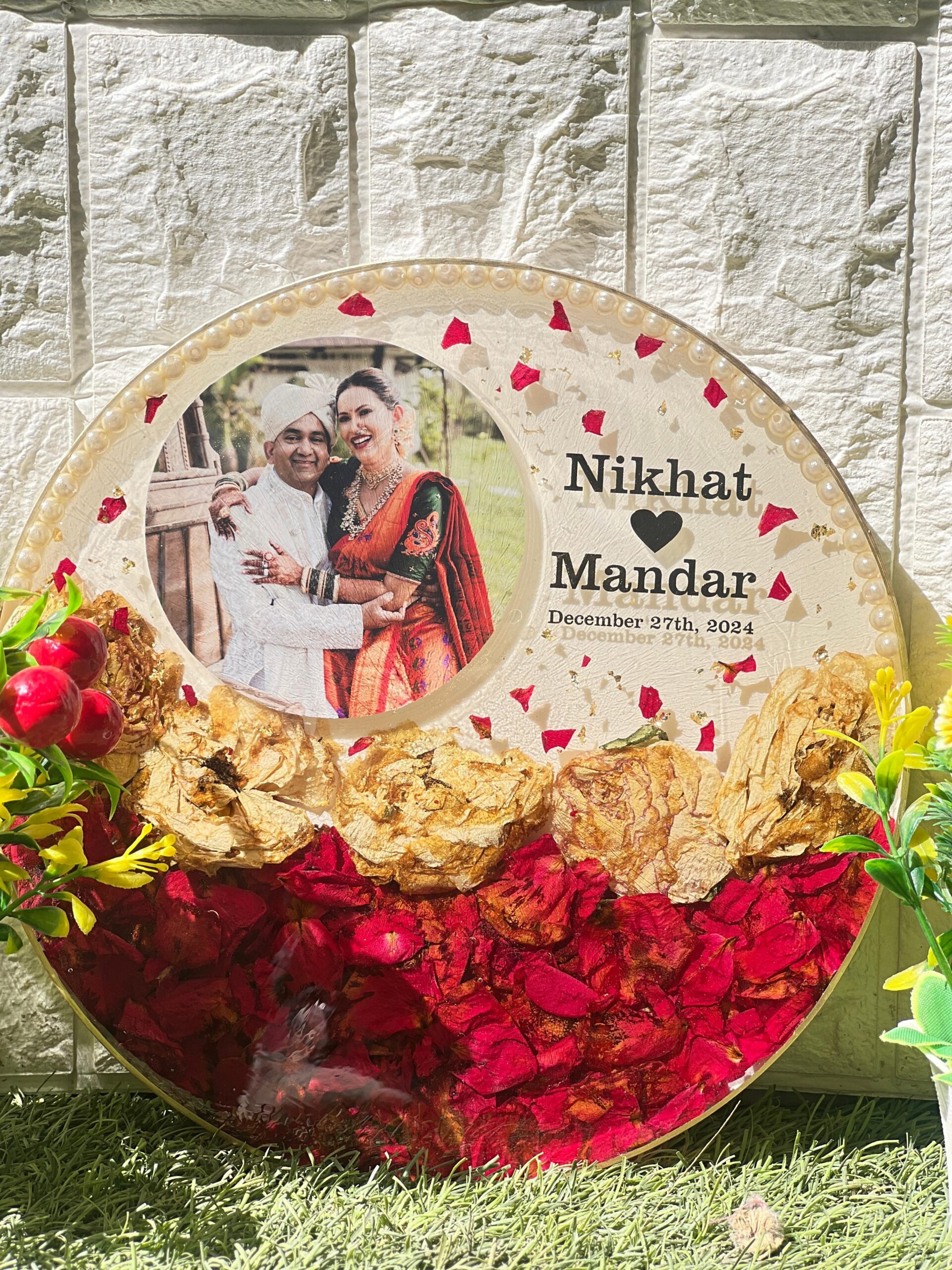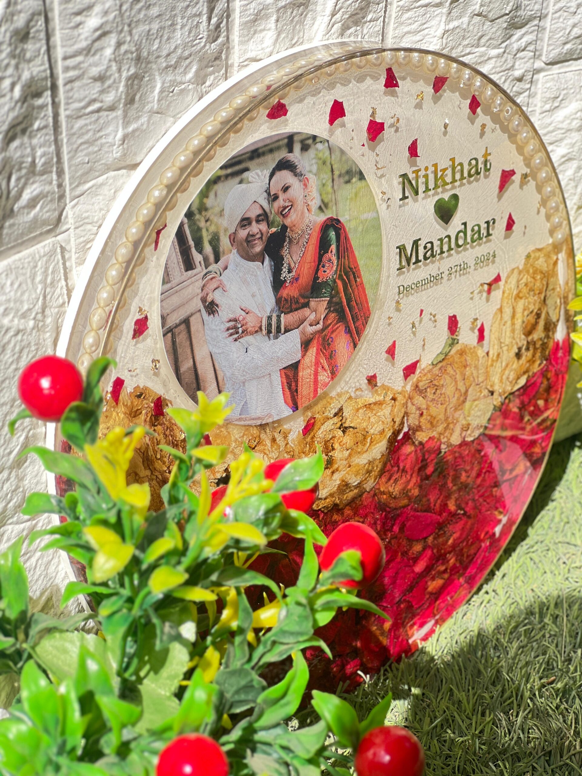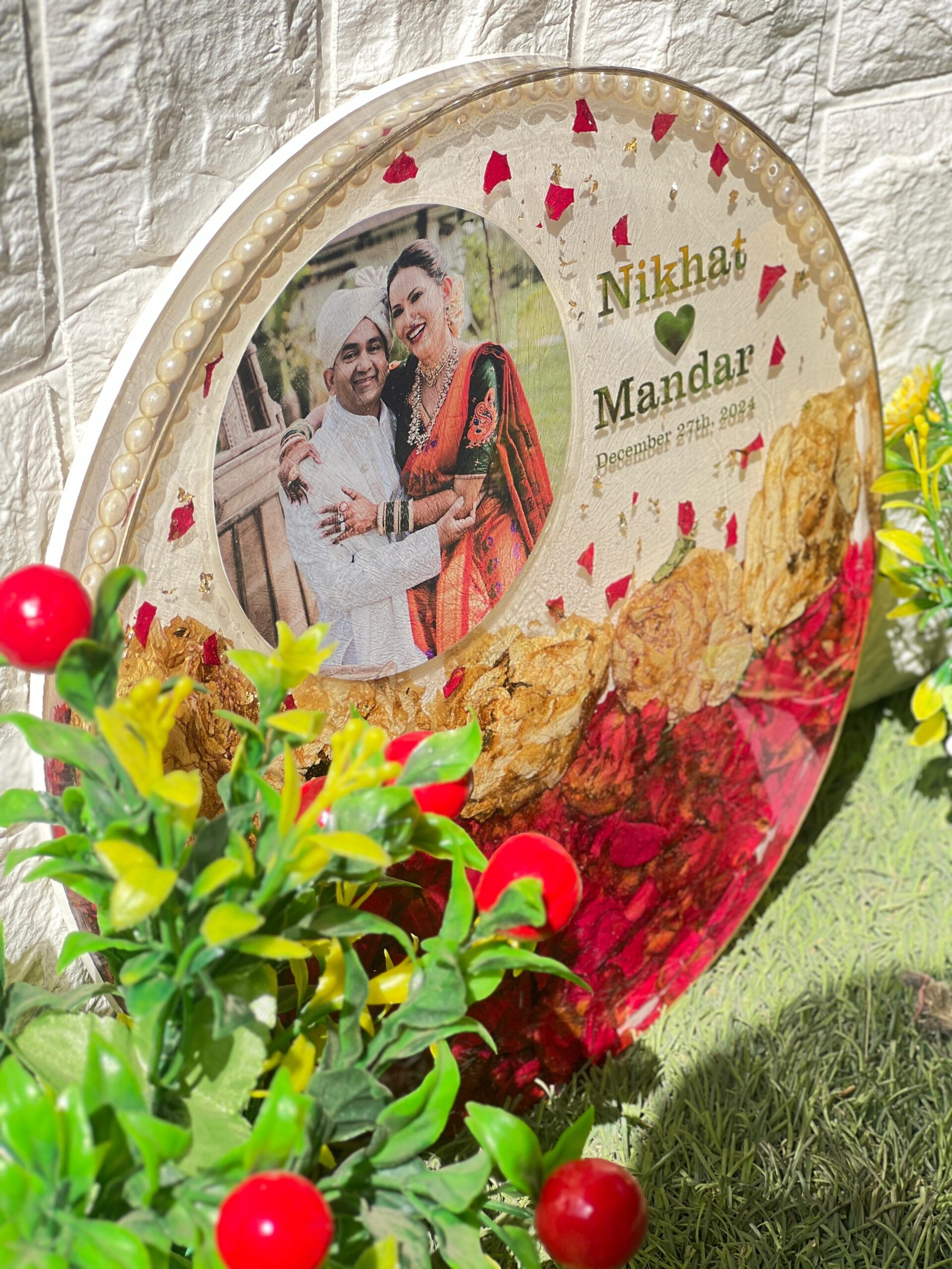 Add custom details like names, dates, or a small message to make it truly yours. This resin photo frame is a unique and lasting gift for your loved ones. Ideal for couples like Nikhat & Mandar, this keepsake captures their wedding memory in the most elegant way.