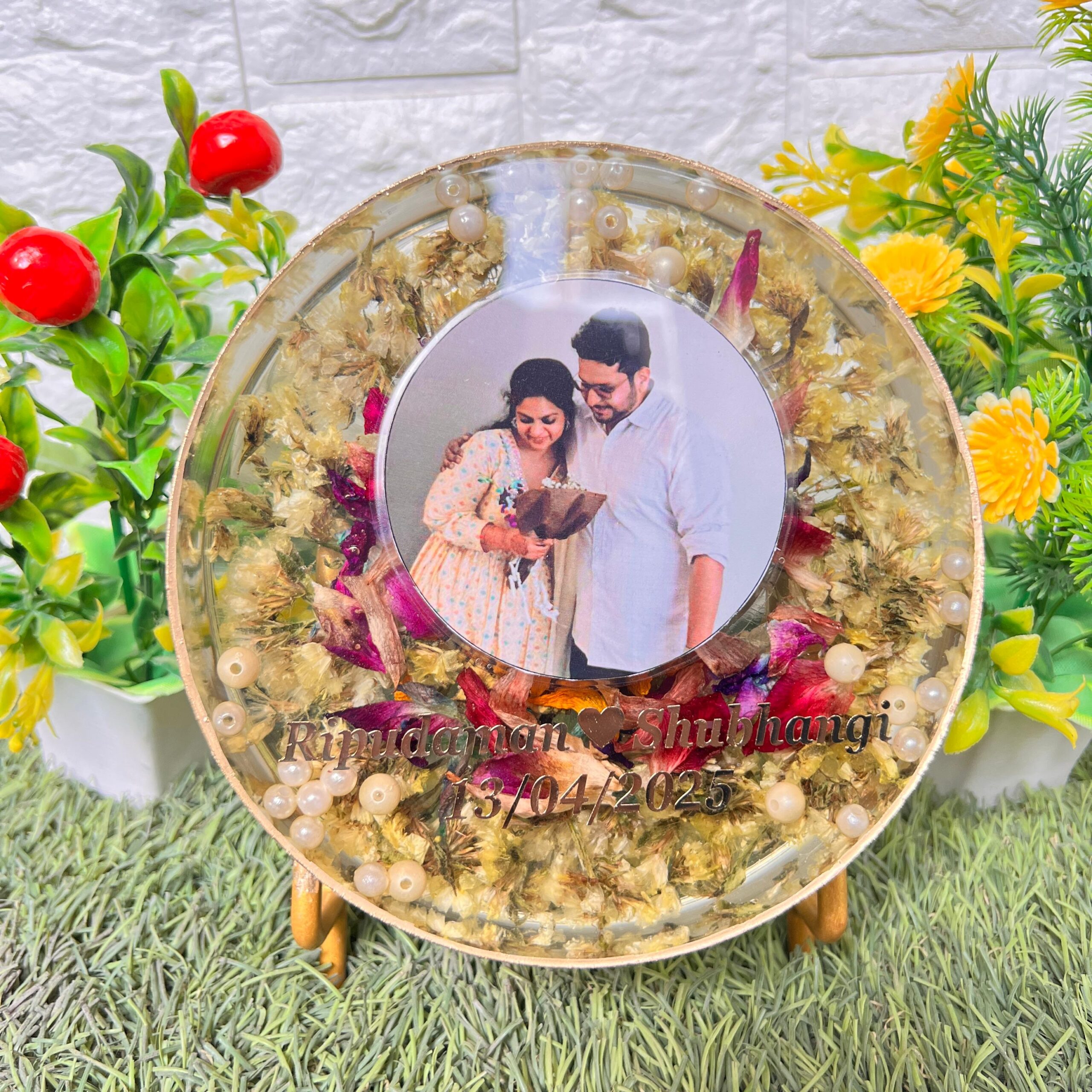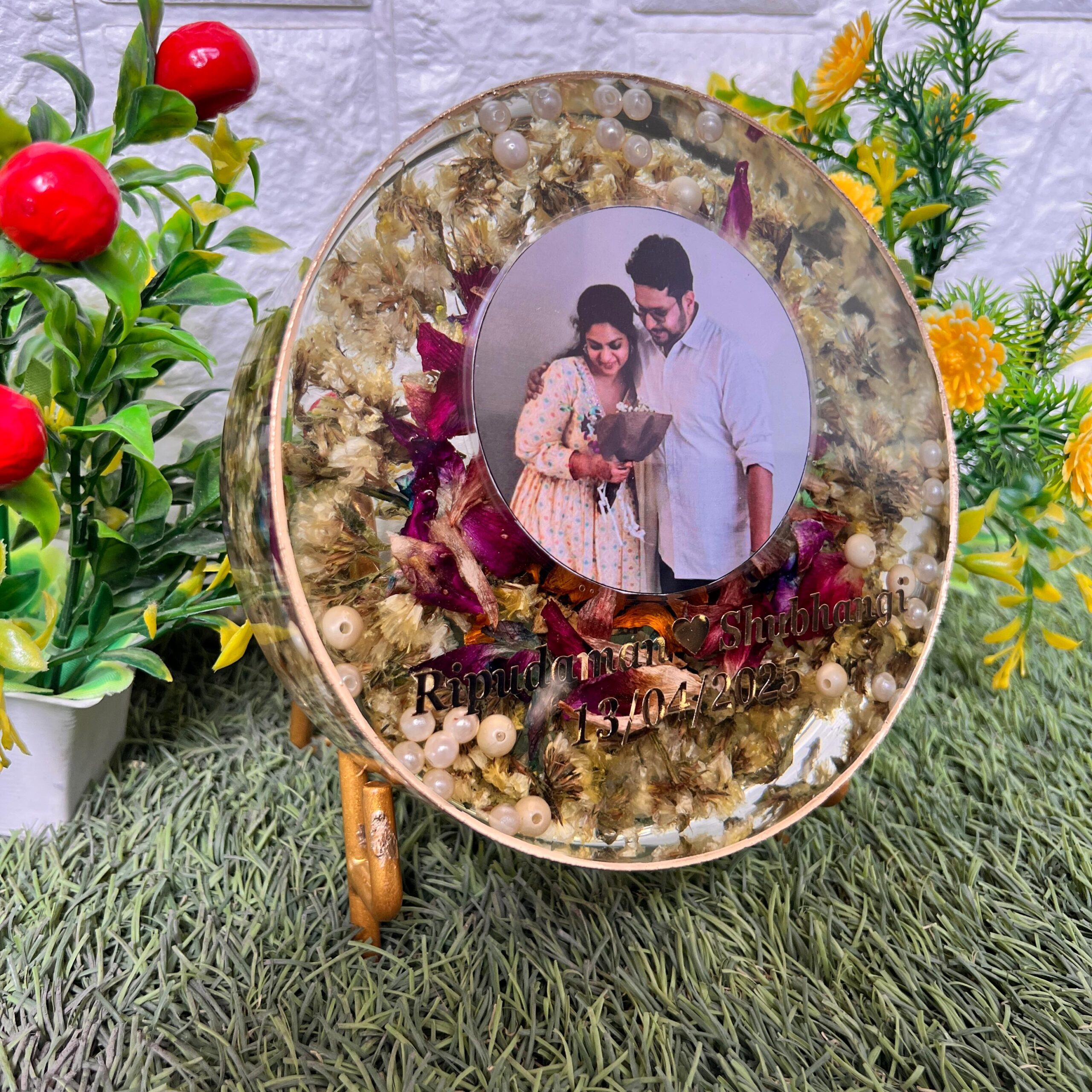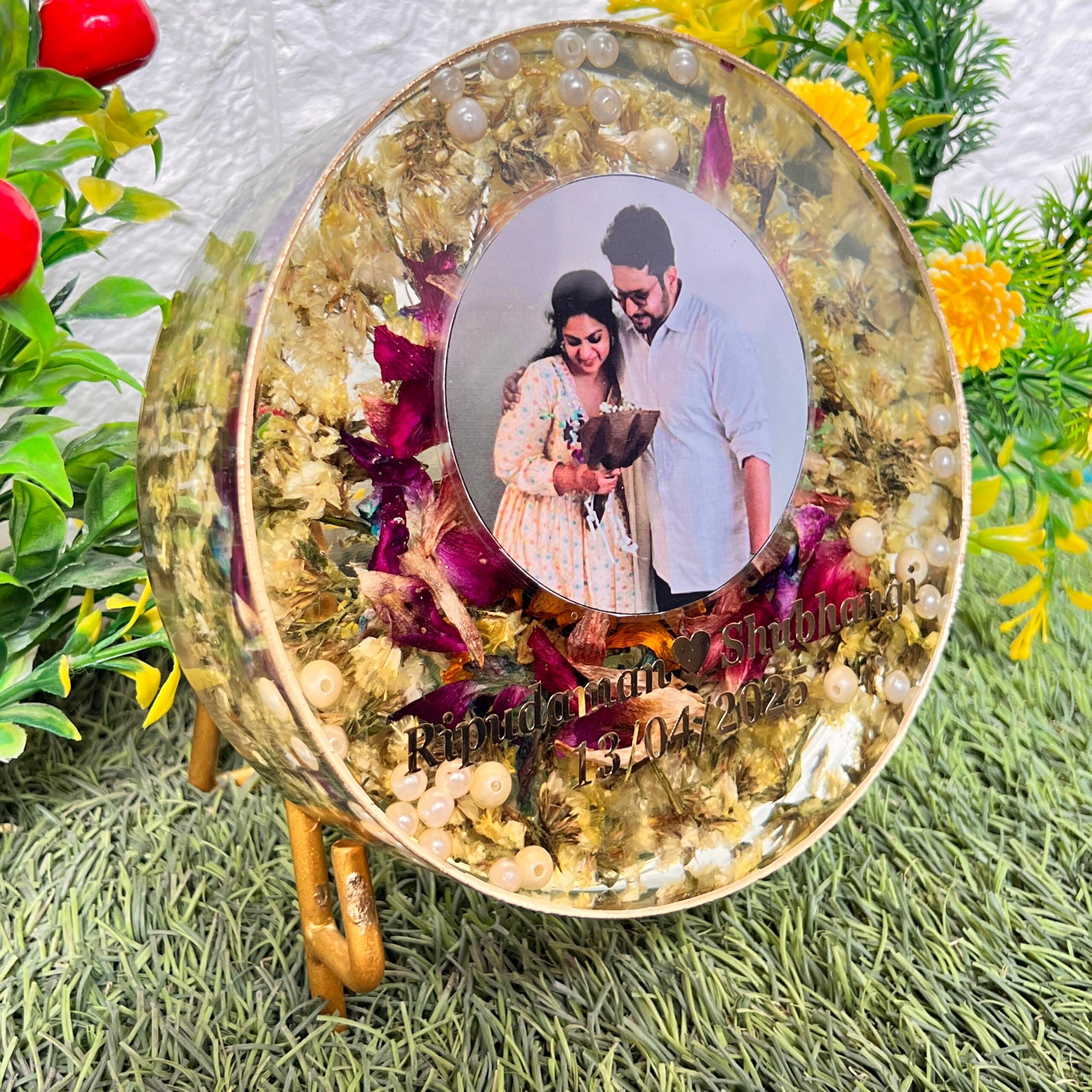 Turn your favorite photo into a lifetime memory with our Round Resin Photo Frame with Preserved Flowers. Designed with love and crafted using premium epoxy resin, this elegant round piece holds your real dried flowers, pearls, and a custom photo beautifully in one place.