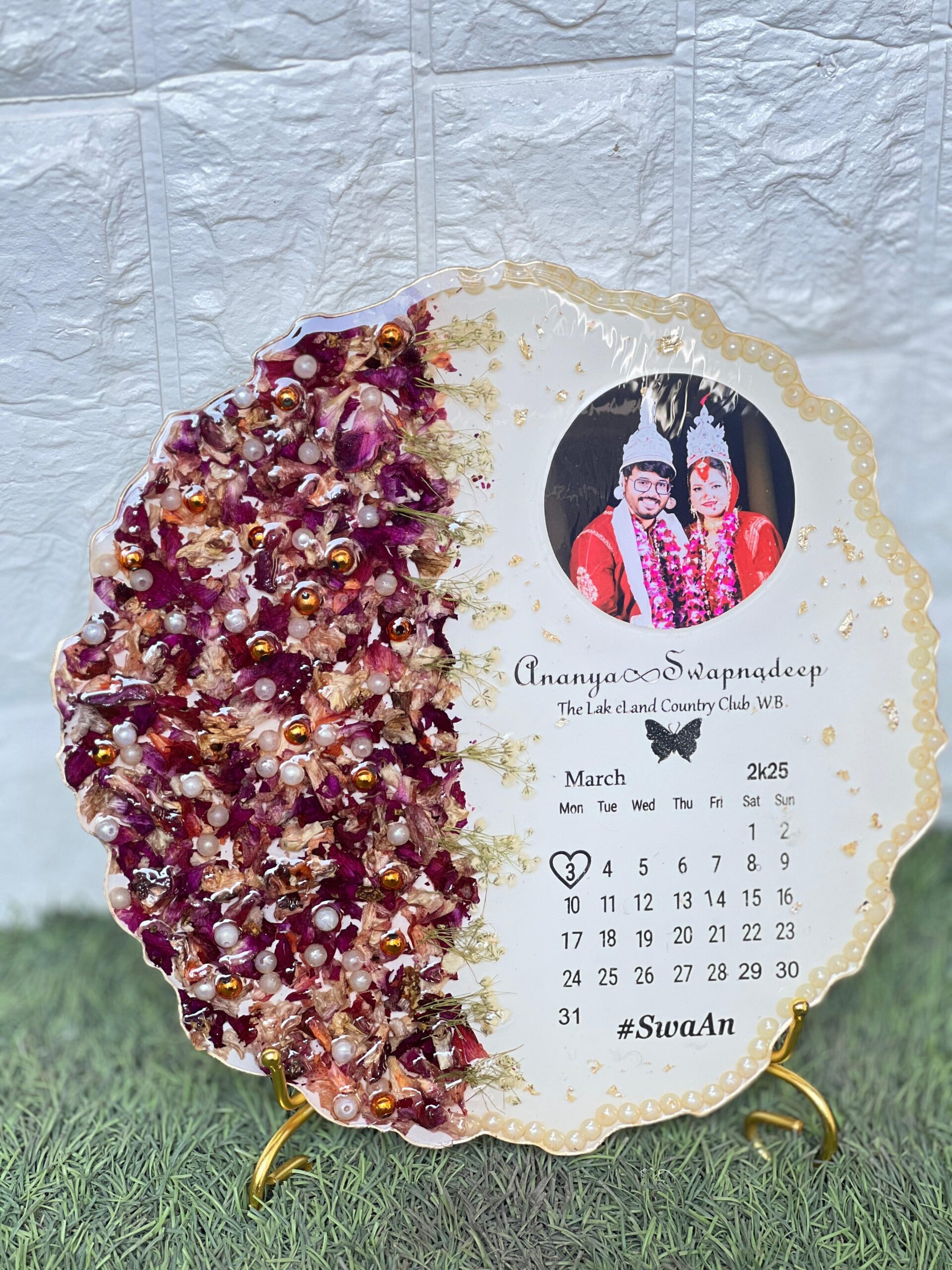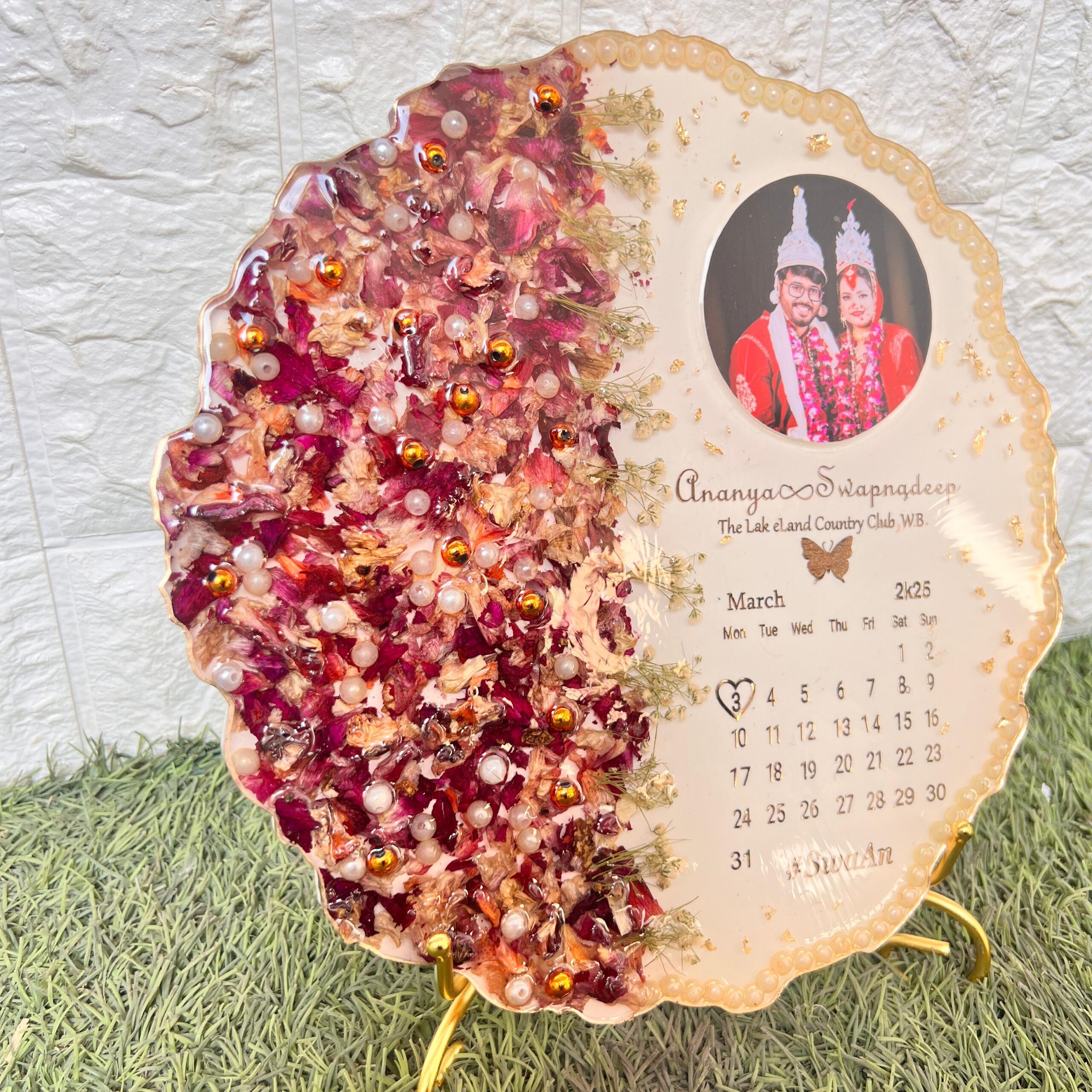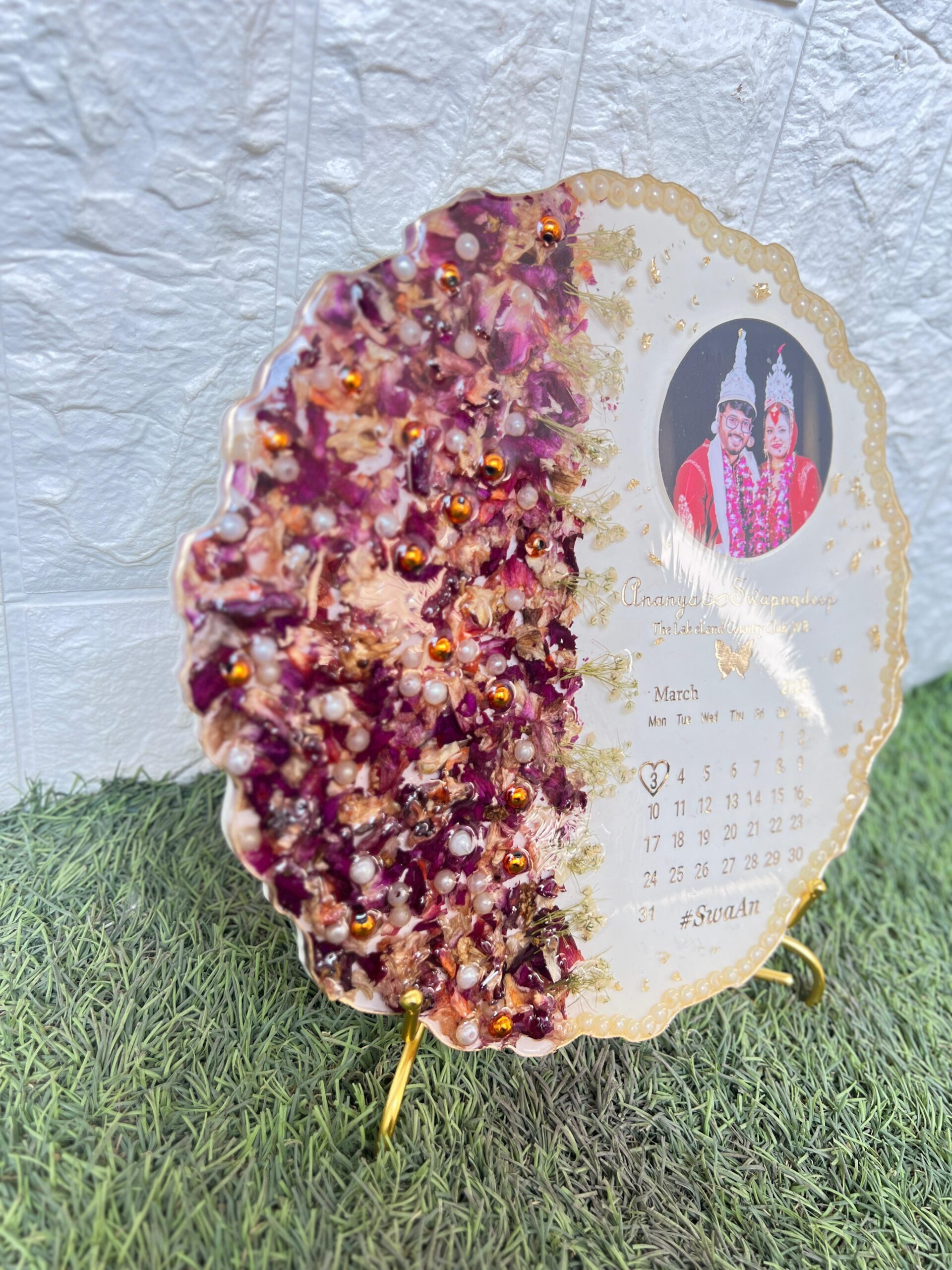 Make your wedding date unforgettable with this Customized Wedding Date Resin Plate. Designed in a round shape with a soft wave edge, this resin frame includes your wedding photo, names, venue, and a highlighted calendar with your special date marked.