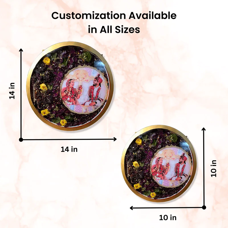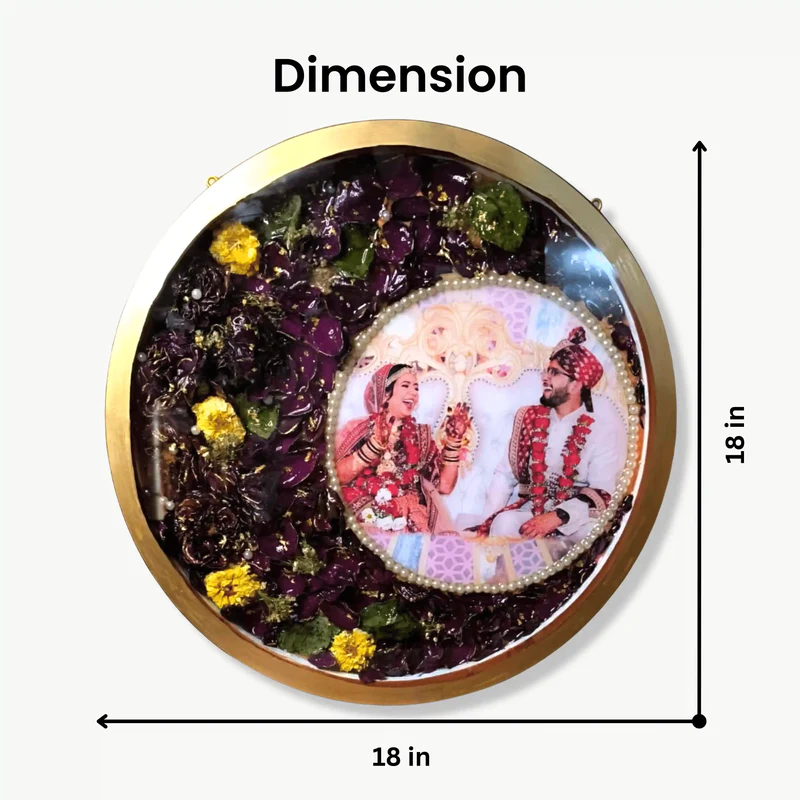 Turn your wedding varmala into a timeless memory with our Wedding Garland Preservation Photo Frame. This 15-inch epoxy resin frame carefully preserves your real wedding garland while displaying your personalized couple photo, creating a keepsake that lasts for years.