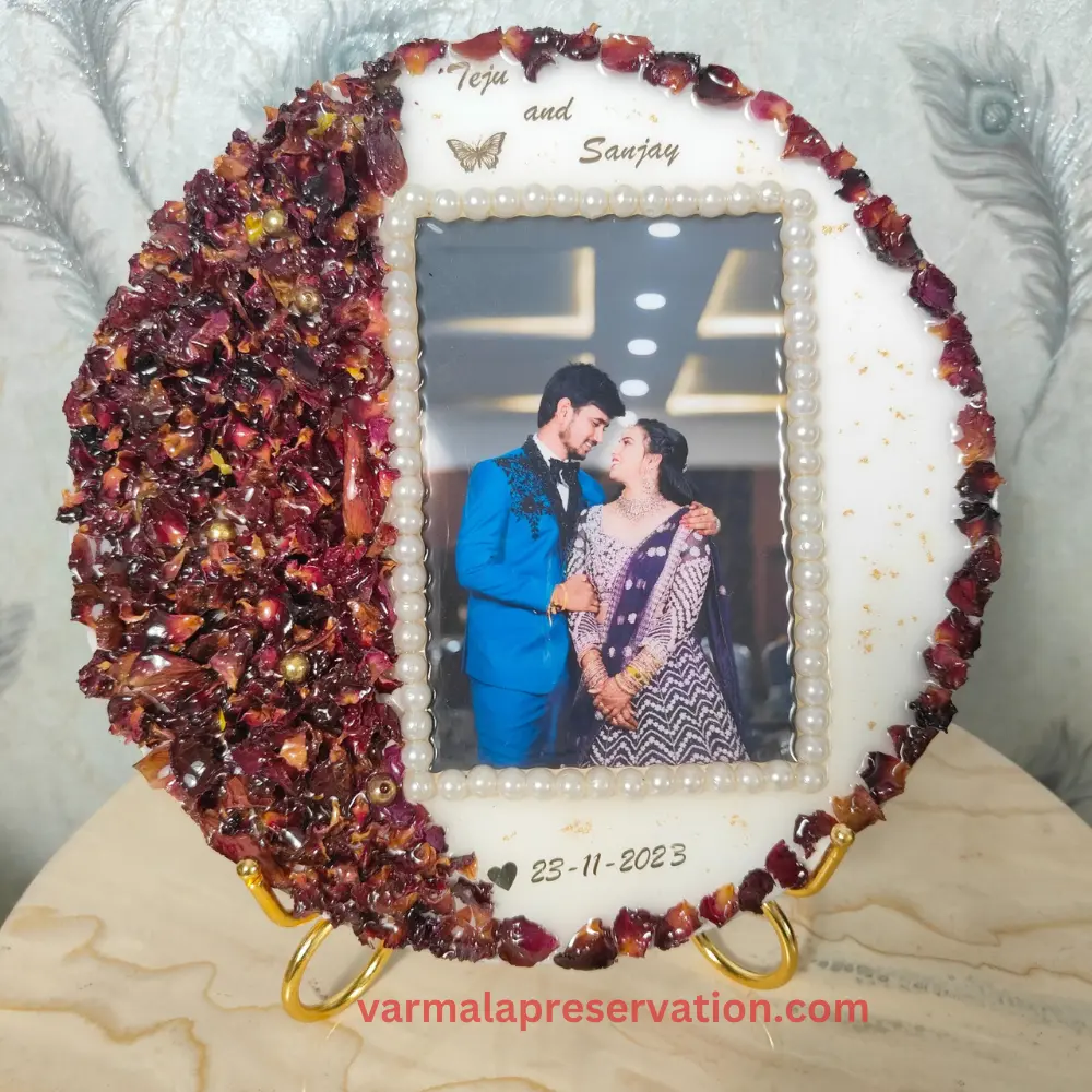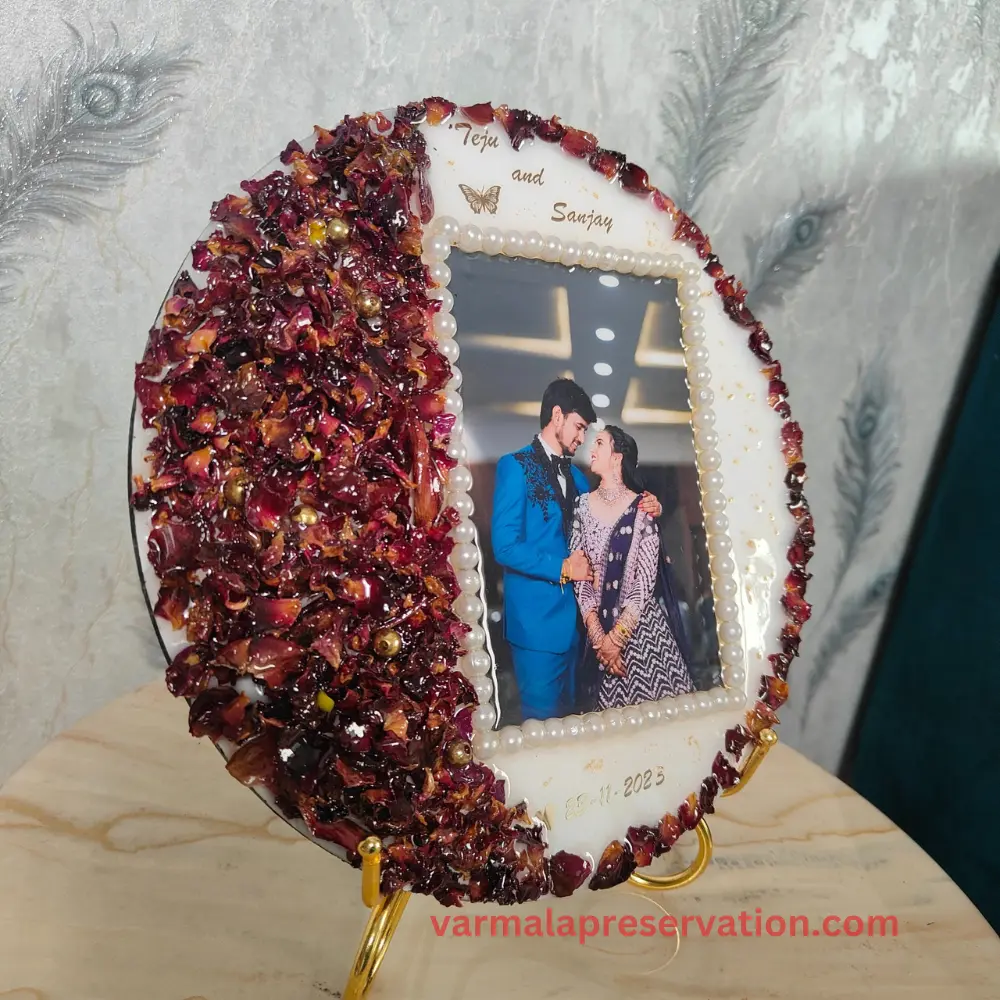 • Product Name: Wedding Varmala Flower Preserved Resin Keepsake (10 Inch)